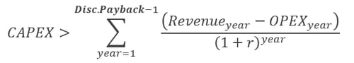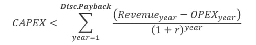 The Discounted Payback Period refers to the number of years it takes to recover the initial investment (CAPEX), discounting future cash flows and taking into account the time value of money.
