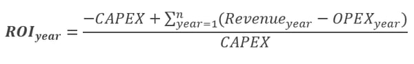 Return on Investment (ROI) is a ratio that reflects the return on the PV plant's net income from the energy selling over a period of time versus the costs for the initial investment (CAPEX) and operation and maintenance (OPEX) throughout its lifetime.
