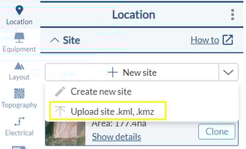 Once you save the KML/KMZ, you will need to upload the site by clicking on "New Site" and "Upload site".
